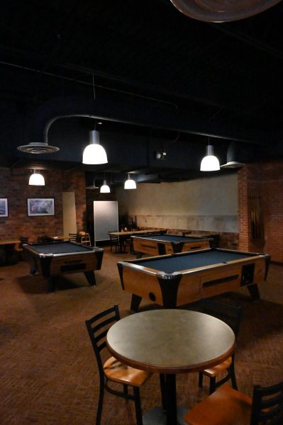 These pool tables are in the Grill. This is a very nice spot to play pool after your done eating, waiting for your next class, or even just wanting to play pool. Theres hardly anyone in the grill after the lunch rush and during the evening before they clean and close at 8:00pm.